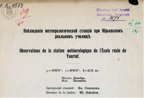 Dorpater Realschule (Tartu Science School) was a German-speaking educational institution, founded based on the local provincial school, Dorpater Kreisschule, in 1877. Ten years later, the school switched to Russian, which remained its language of instruction until 1918. The school was considered prestigious – for example, graduates had the right to be admitted to Riga Polytechnicum without entrance exams. The school was located on the corner of Riia and Kalevi streets, in a building that later housed the Tartu Girls’ Gymnasium. The school had a weather station where observations were conducted; the observation data were published in print from 1903 to 1907. The weather data were also published in the daily newspaper Postimees, which made the weather station well known among the residents of Tartu.