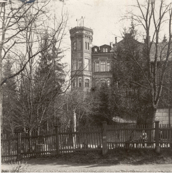 Villa of Alexander von Oettingen, with weather observation instruments visible on the tower